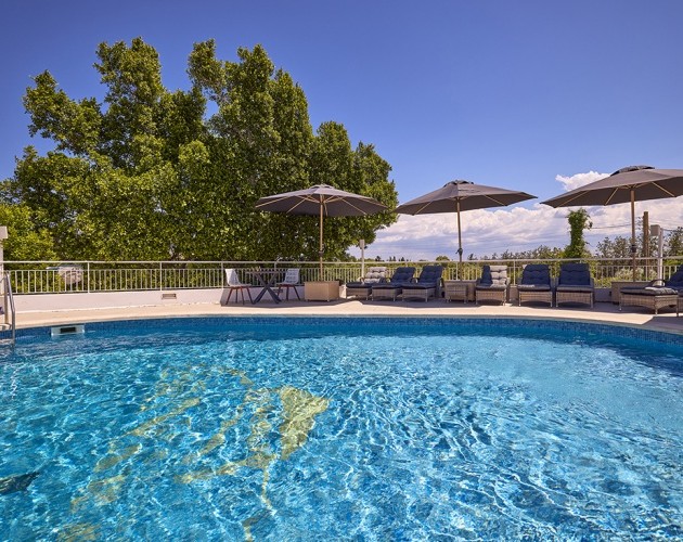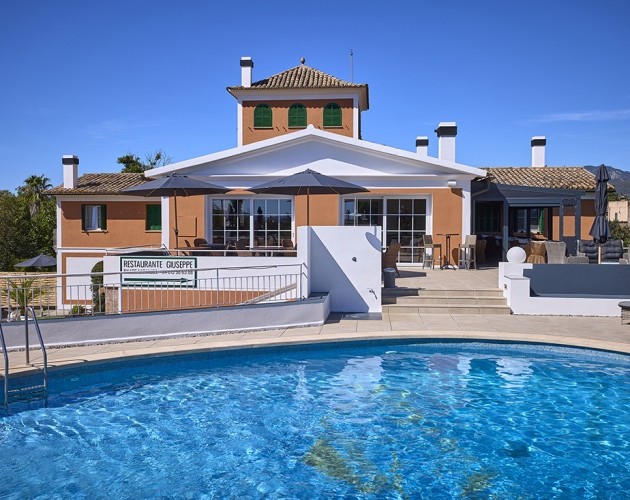 Disfruta de una piscina rodeada de palmeras y tumbonas, perfecta para relajarte bajo el sol mallorquín. Cada mañana te espera un desayuno buffet lleno de productos frescos y locales, y al atardecer, el Restaurante Giuseppe abre sus puertas para ofrecerte una cena mediterránea con toques creativos, abierta también al público general.